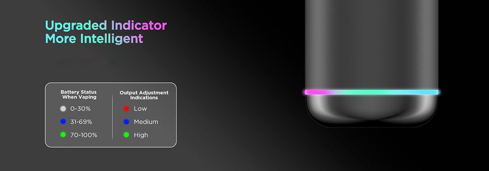 Πατήστε γρήγορα το κουμπί 3 φορές για εναλλαγή μεταξύ Χαμηλό (Κόκκινο), Μεσαίο (Μπλε) και Υψηλό (Πράσινο) για να προσαρμόσετε εύκολα την έξοδο και να απολαύσετε διάφορες εντάσεις στην γεύση.
